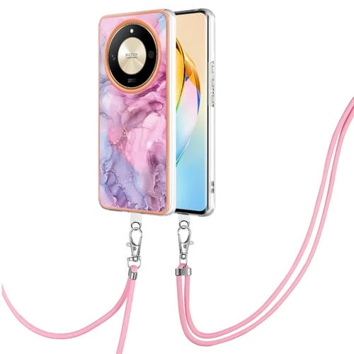 Funda para Teléfono Honor X9B con IMD Doble Cara y Revestimiento Mármol Galvanizado con Cordón (Rosa)
