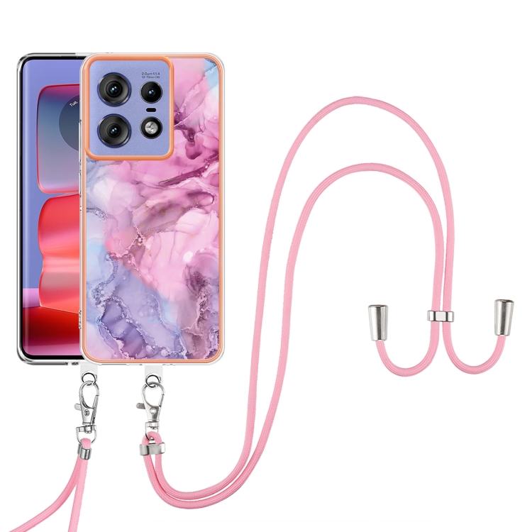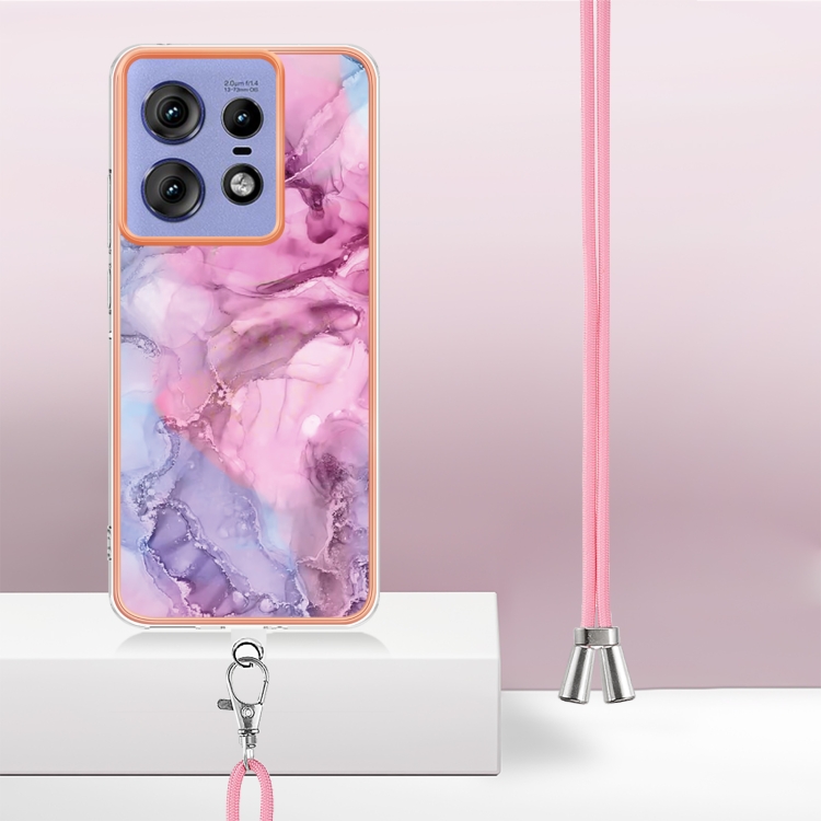 Funda para Teléfono Motorola Edge 50 Pro con Imd Doble Cara y Revestimiento Mármol Galvanizado con Cordón (Rosa)