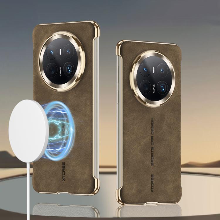 Funda para Teléfono Gkk Cuero Galvanizado con Magsafe sin Bordes para Huawei Mate 70 Pro (Marrón Mate)