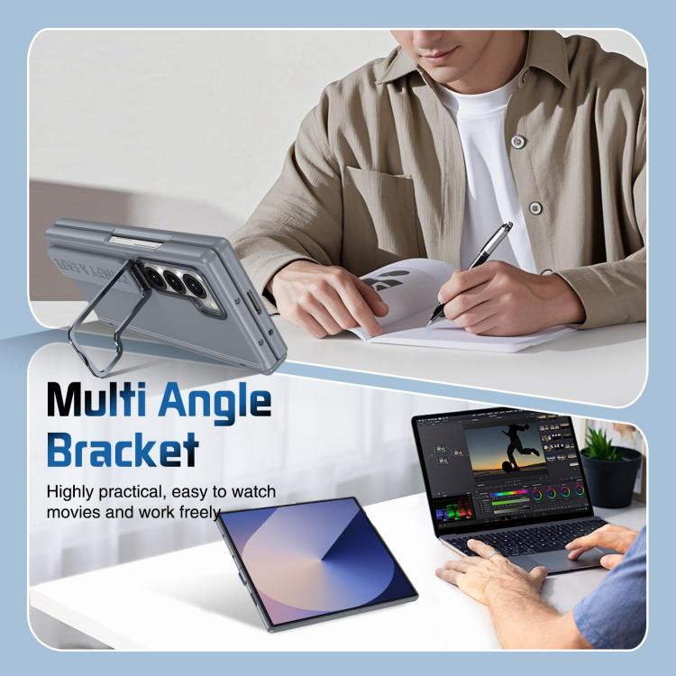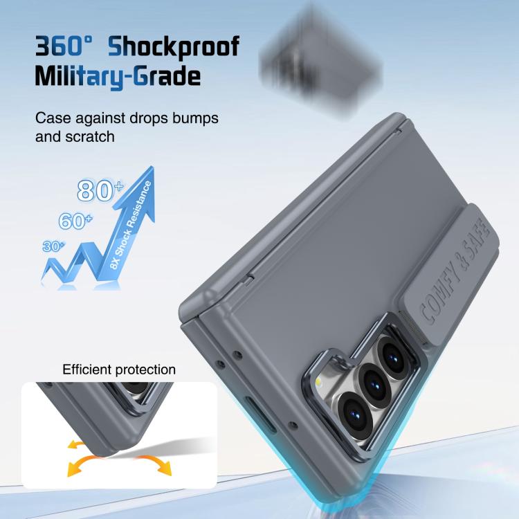 Funda para teléfono con marco de lente integrado y correa para Samsung Galaxy Z Fold6 (gris)