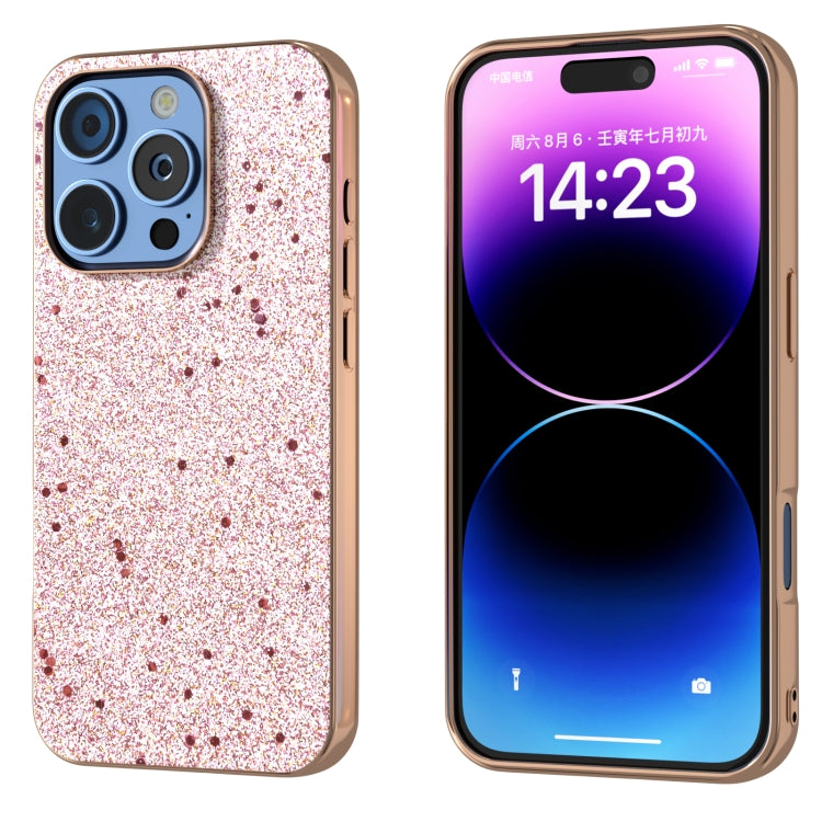 Funda para Teléfono iPhone 16 Pro Max Marco Galvanizado Purpurina a Prueba de Golpes (Dorado y Rosa)