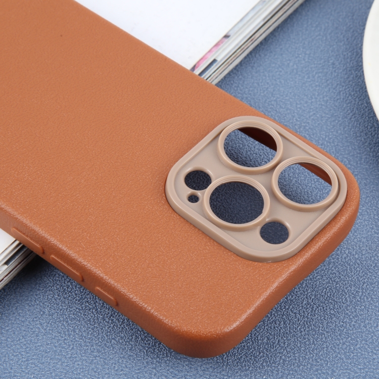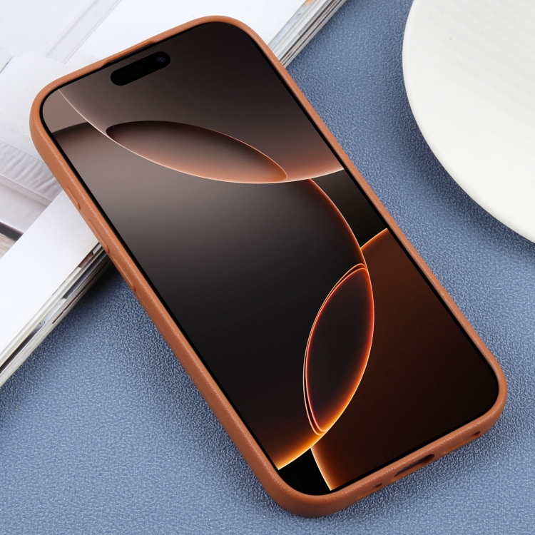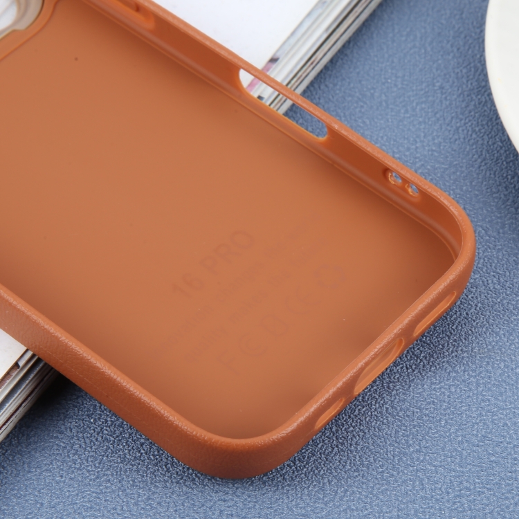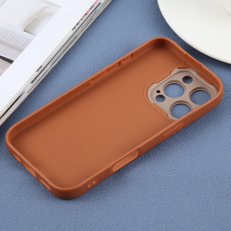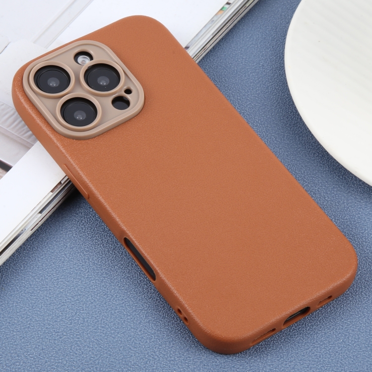 Funda para Teléfono iPhone 16 Pro Max Parte Trasera Piel Sintética Lisa (Marrón)