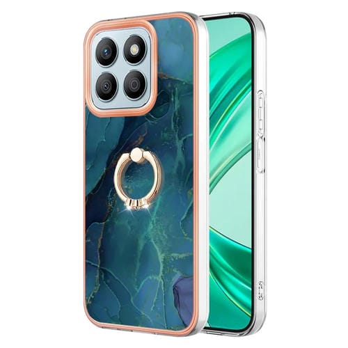 Funda para Teléfono Honor X8B con Revestimiento Mármol Galvanizado Doble Cara Imd y Anillo (Verde)
