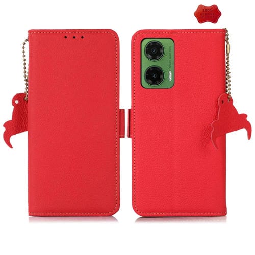 Funda para Teléfono Cuero Genuino Tj con Rfid e Imán Lateral para Motorola Moto G35 (Rojo)