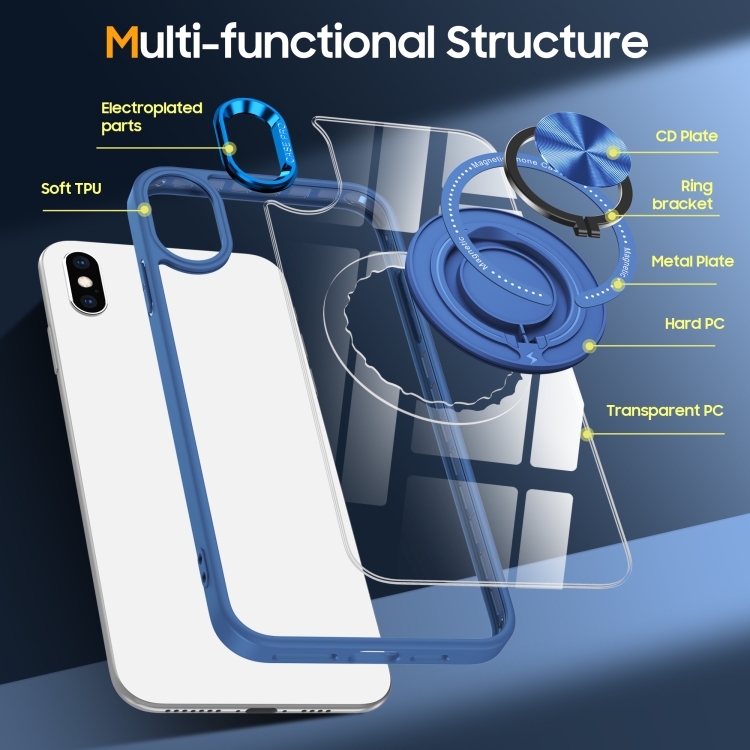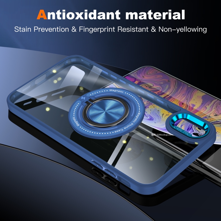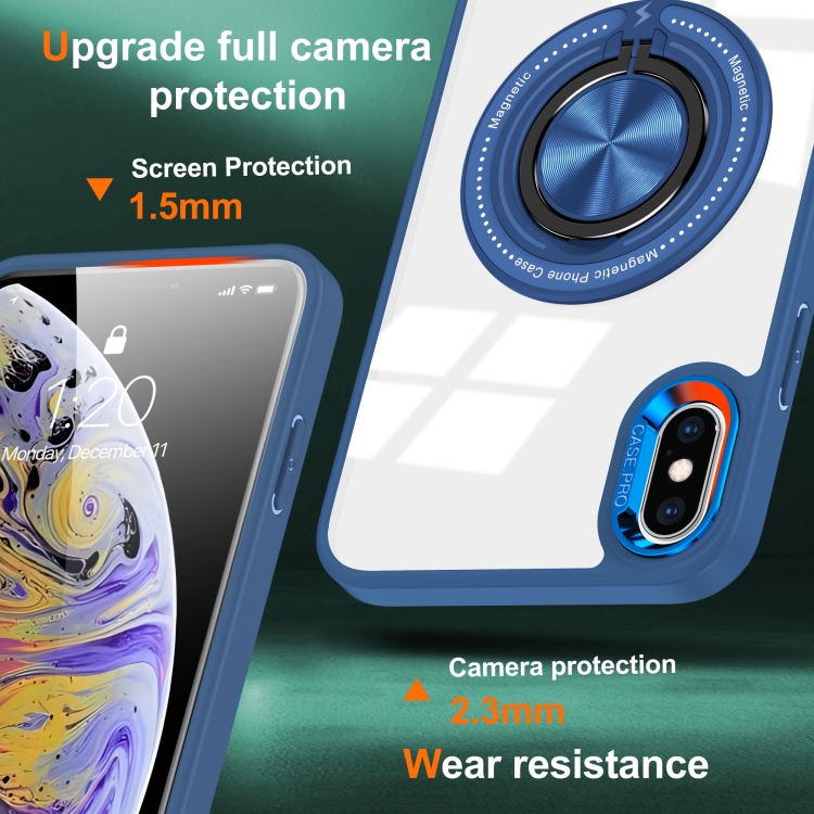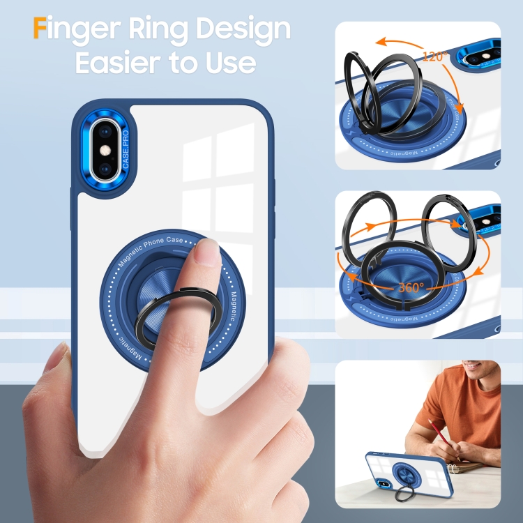 Funda para Teléfono iPhone Xs/X Soporte Anillo Giratorio Magnético (Azul Oscuro)