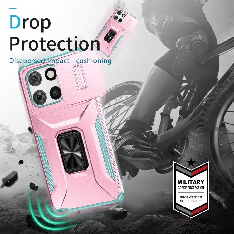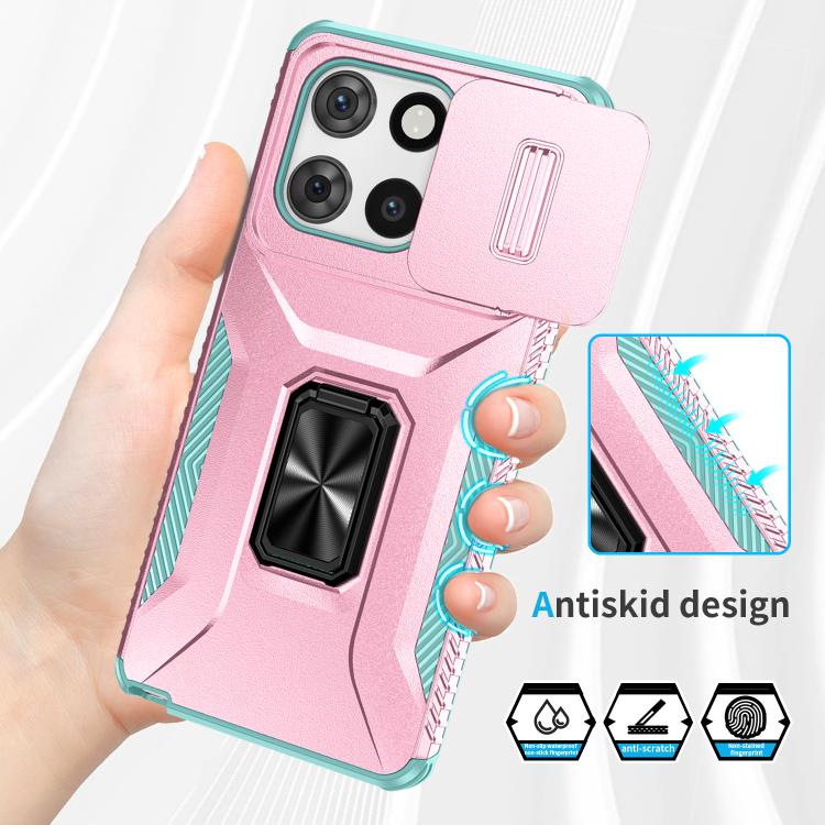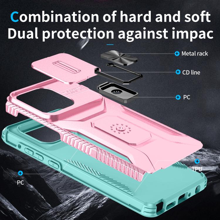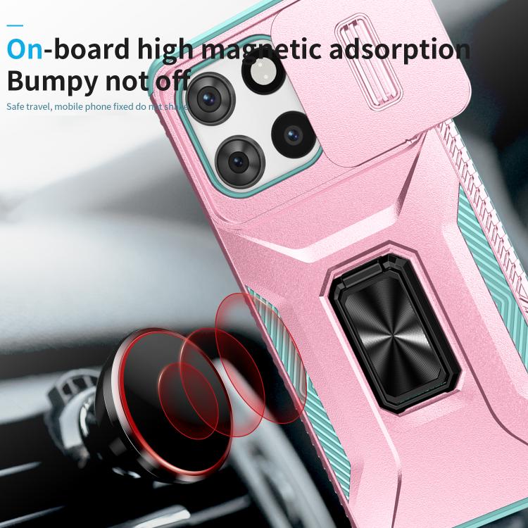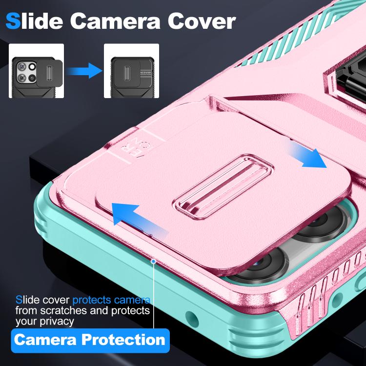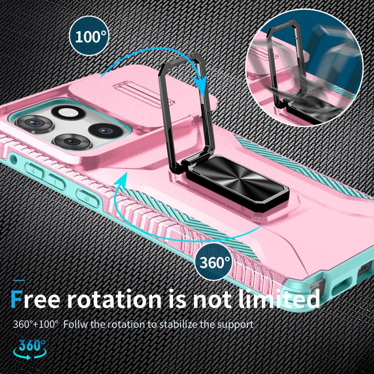 Funda para Motorola Moto G Stylus 2025 con Soporte Deslizante y Protector de Pantalla (Rosa + Gris Verde)