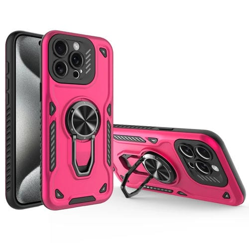 Funda para Teléfono iPhone 15 Pro Soporte Giratorio Metal TPU PC (Rosa Rojo)