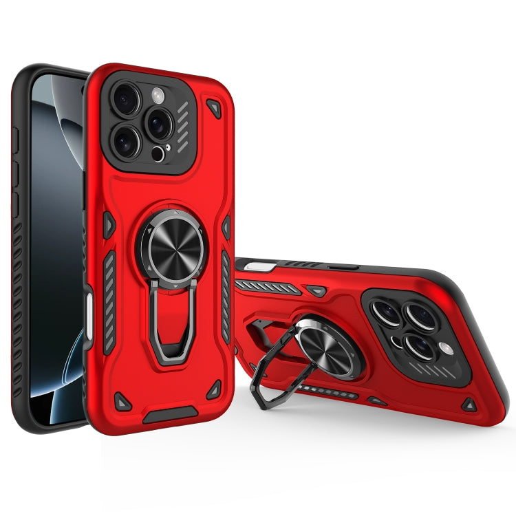 Funda para Teléfono TPU + PC con Soporte Giratorio de Metal para iPhone 16 Pro Max (Rojo Brillante)