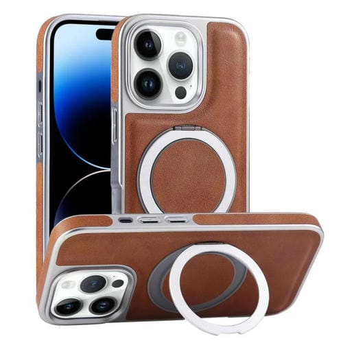 Funda para Teléfono iPhone 14 Pro Max con Soporte Magsafe Giratorio de Cuero Granulado (Marrón)