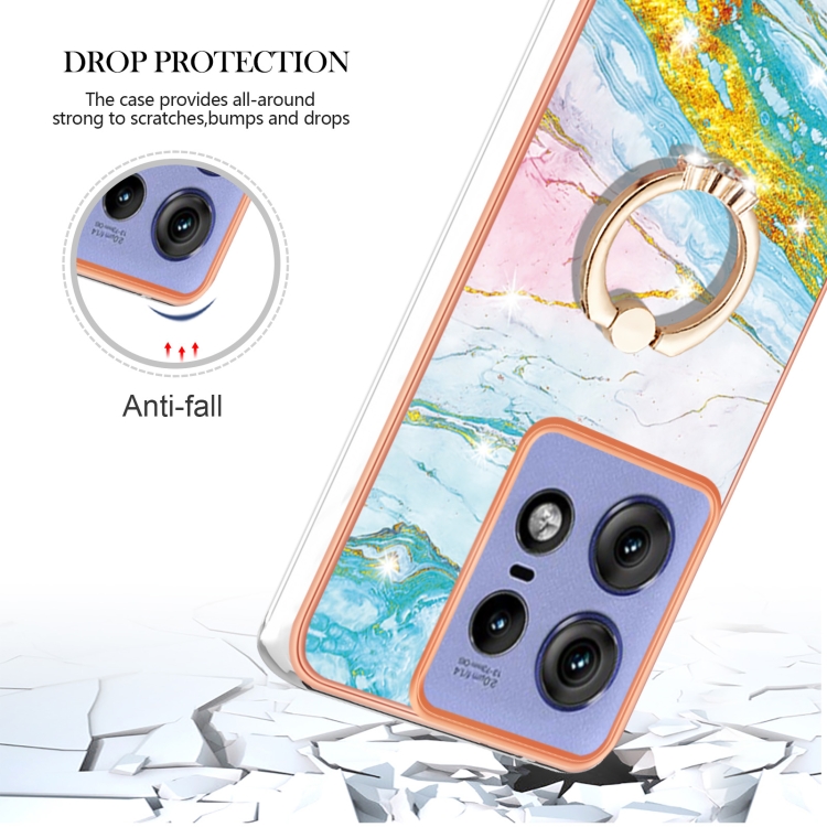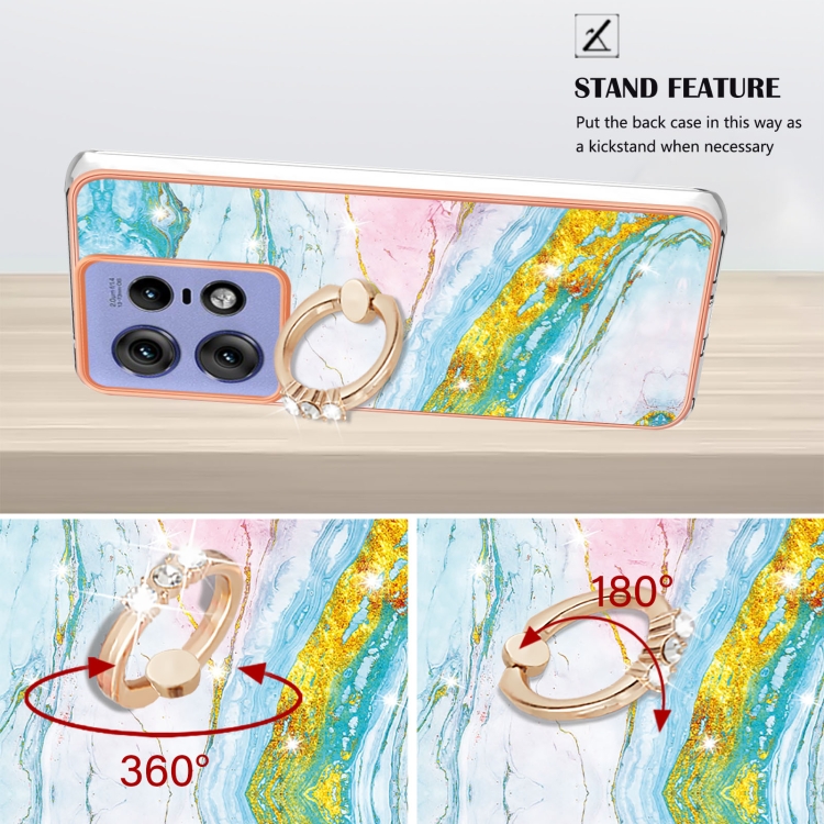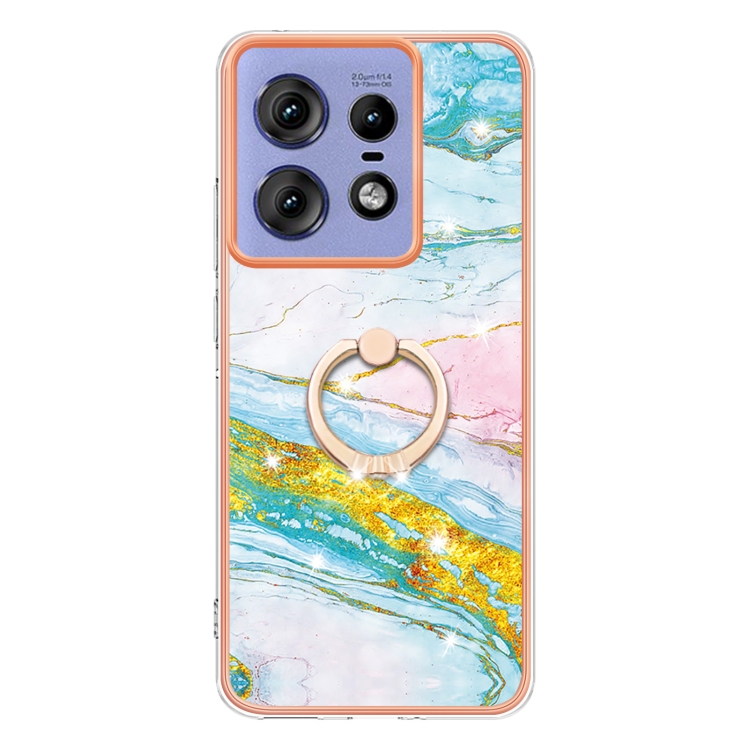 Funda para Teléfono Motorola Edge 50 Pro con Soporte para Anillo y Revestimiento Mármol Imd TPU (Verde)
