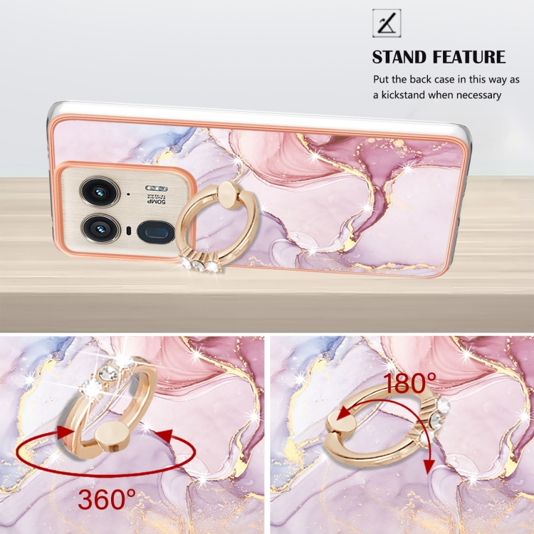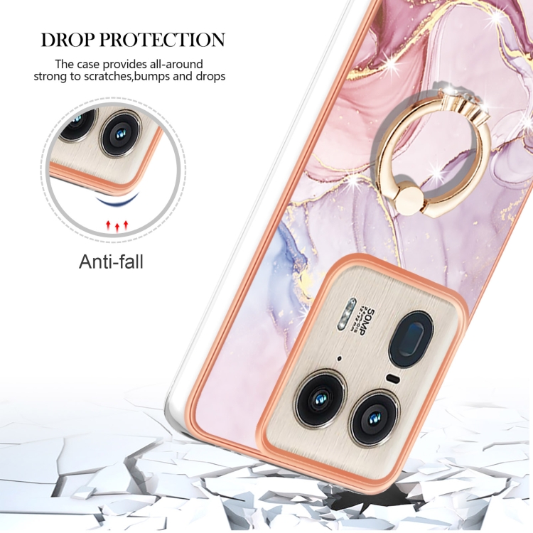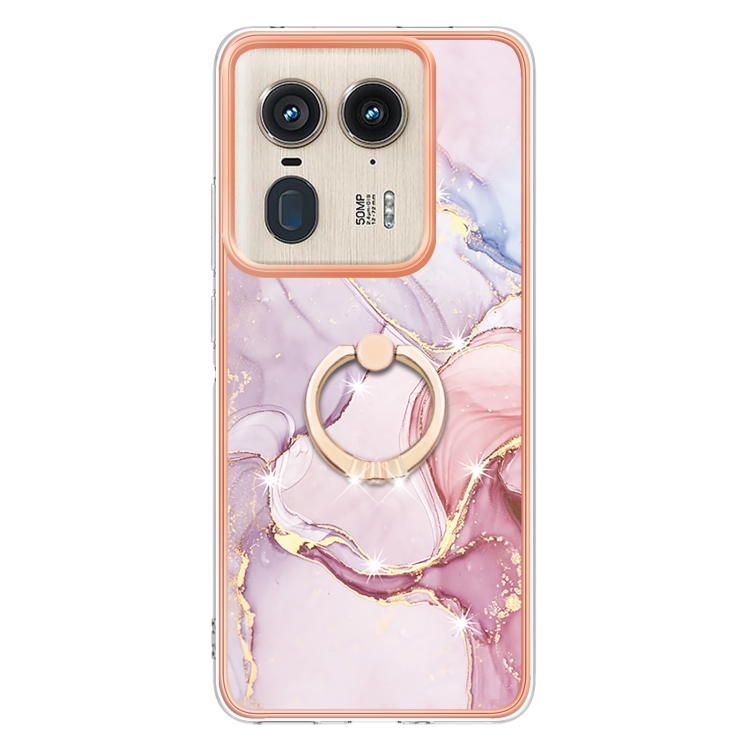 Funda para Motorola Edge 50 Ultra con Soporte Anillo y Revestimiento Mármol Imd de TPU (Oro Rosa)