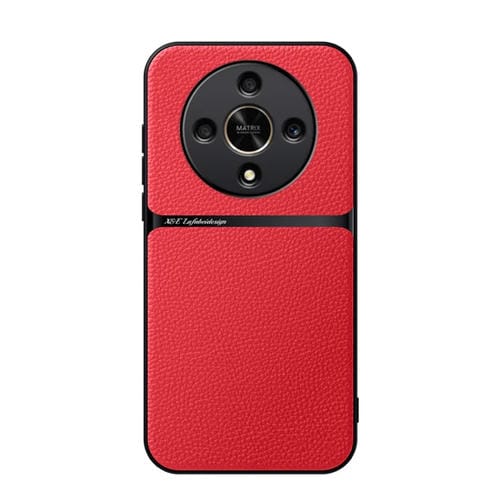 Funda para Teléfono Honor X9B con Tapa Magnética de Cuero de Lichi a Prueba de Golpes (Rojo)