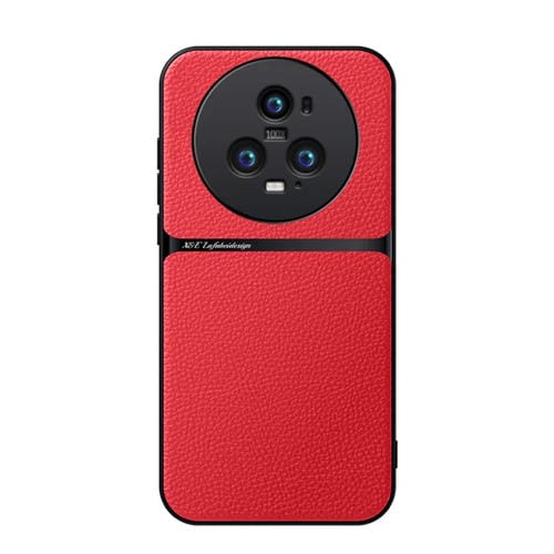 Funda para Teléfono Honor Magic5 Pro con Tapa Magnética de Cuero Litchi y Protección Total (Rojo)