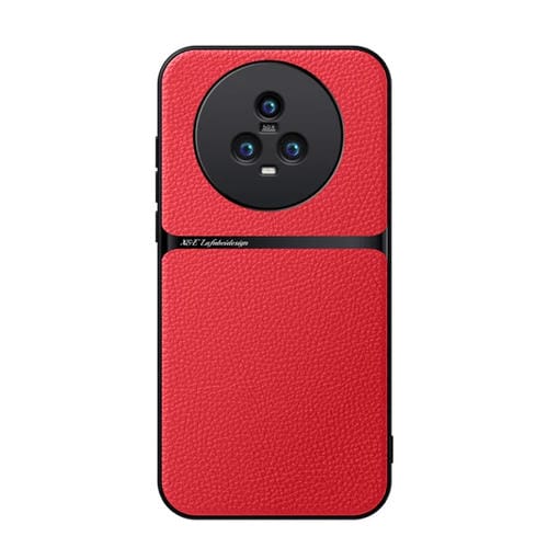 Funda para Honor Magic5 con Tapa Magnética de Cuero Litchi y Protección Total (Rojo)
