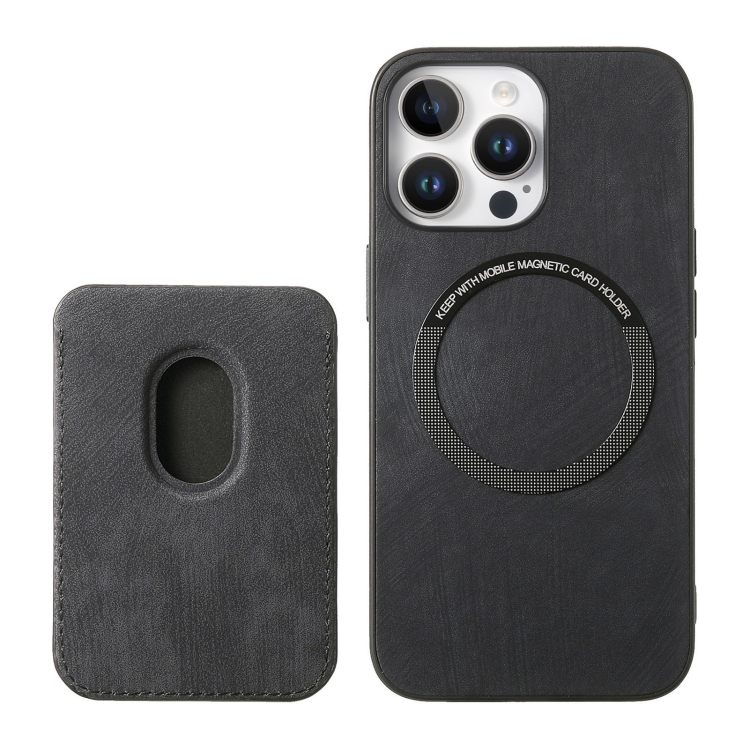 Funda para Teléfono iPhone 16 Pro Max Cuero Retro con Tarjetero (Negro)