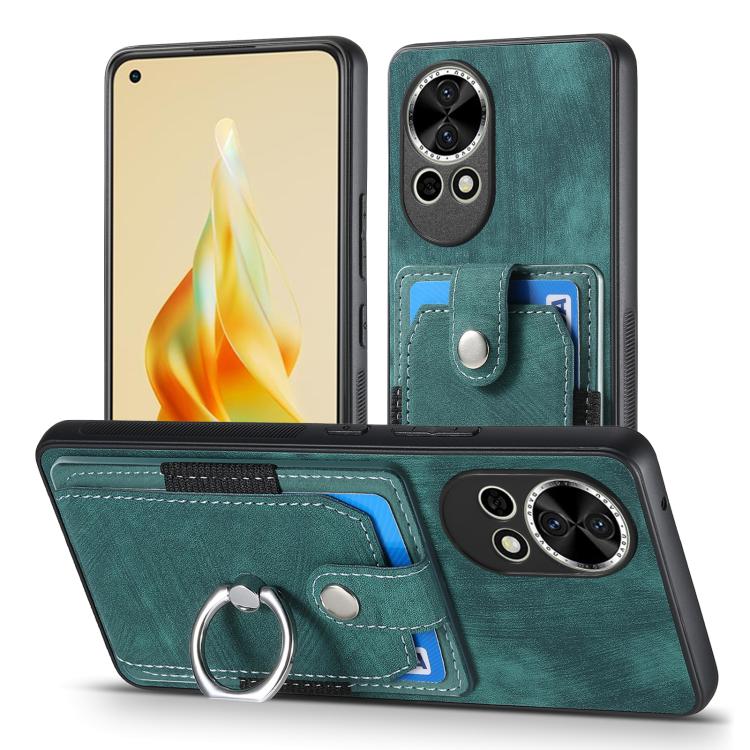 Funda para Teléfono Huawei Nova 13 con Tarjetero y Anillo Tacto de Piel (Verde)