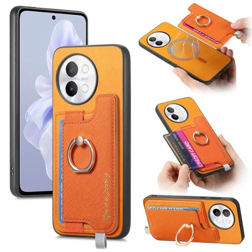 Funda para Teléfono con TaRJetero y Anillo de Cuero con Diseño Retro Magsafe Cross para Vivo S18E 5G (Amarillo)