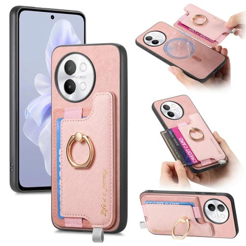 Funda para Teléfono con TaRJetero y Anillo de Cuero con Diseño Retro Magsafe Cross para Vivo S18E 5G (Rosa)