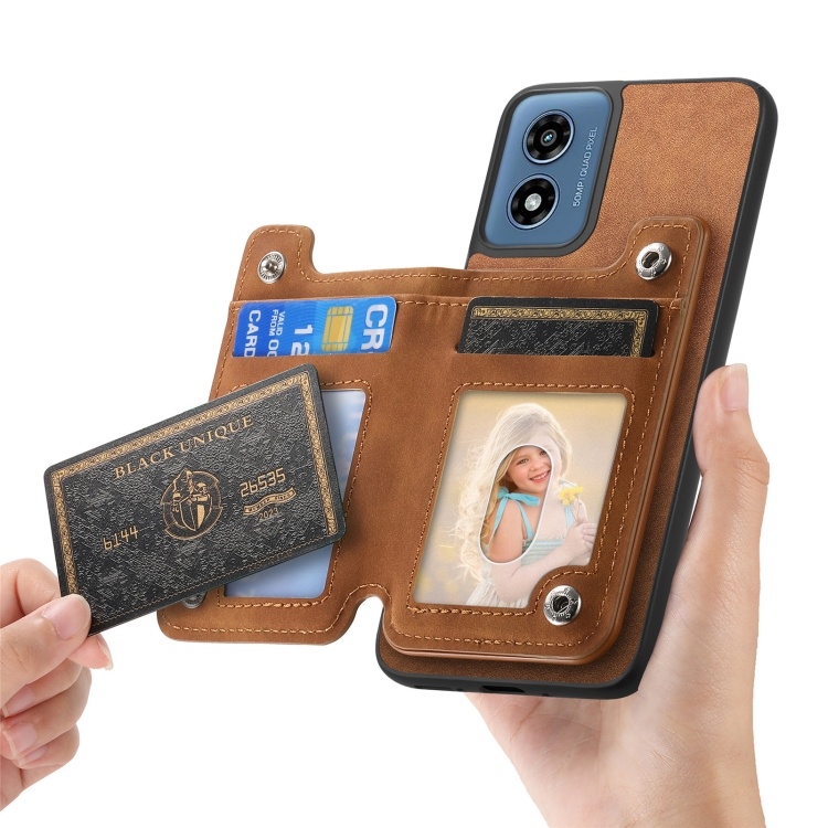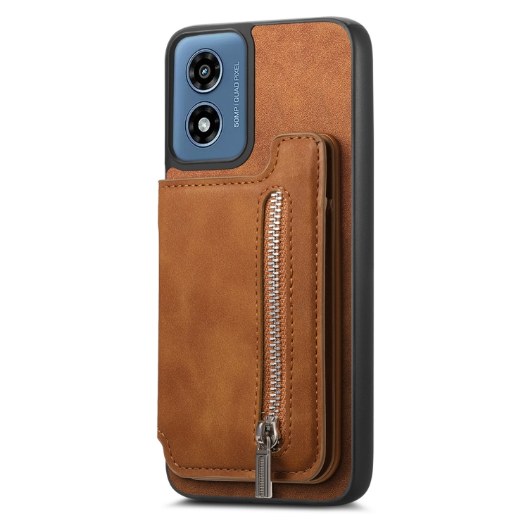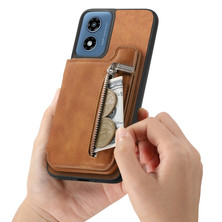 Funda para Teléfono Motorola Moto G55 con Tarjetero y Cremallera Magsafe (Marrón)