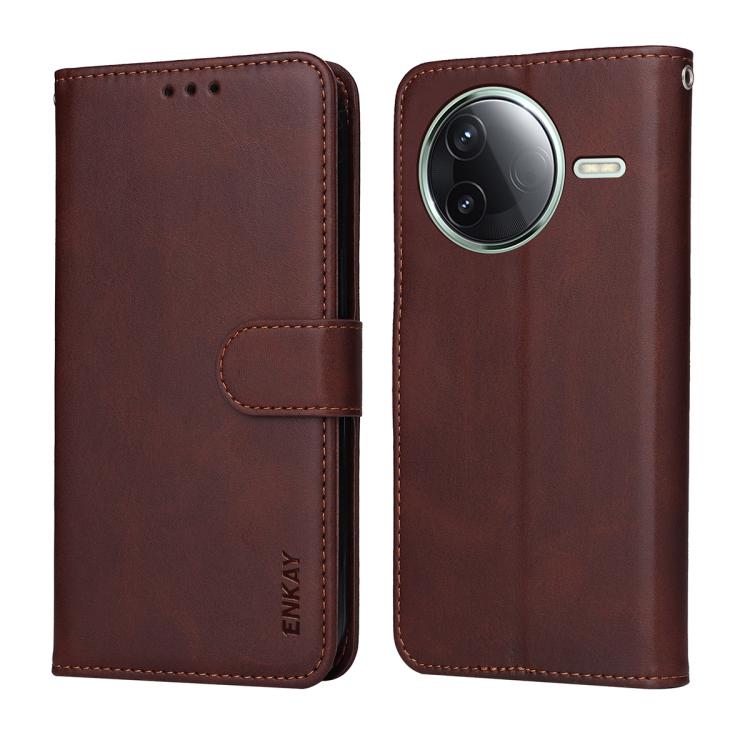 Funda para Teléfono con Textura de Piel de Becerro Tipo Billetera Enkay para Redmi K80 con Película para Pantalla (Azul)