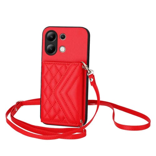 Funda para Teléfono con Textura Rómbica Global y Rfid para Redmi Note 13 4G con Cordón Largo (Rojo)