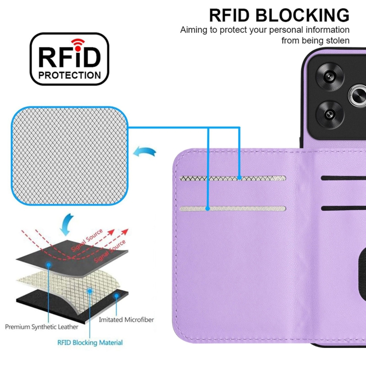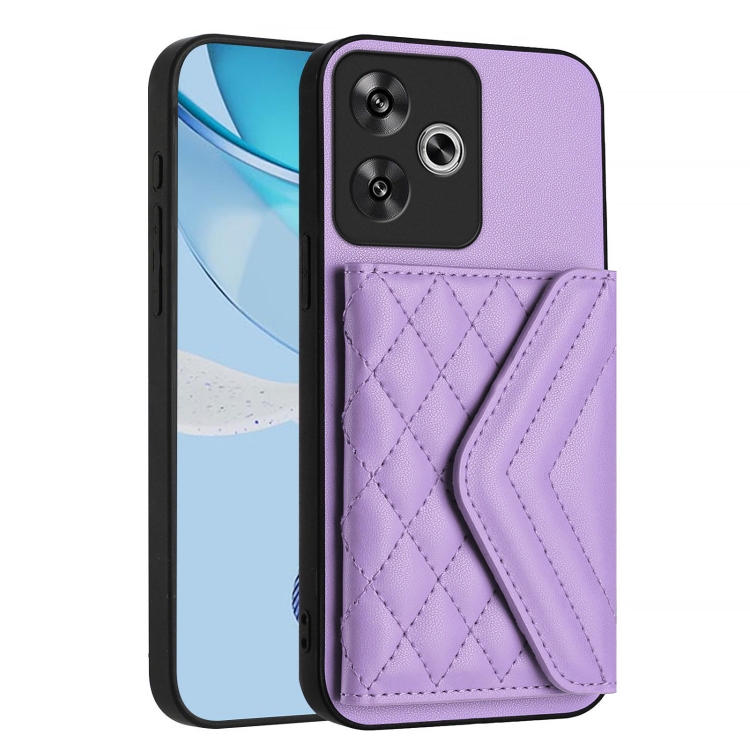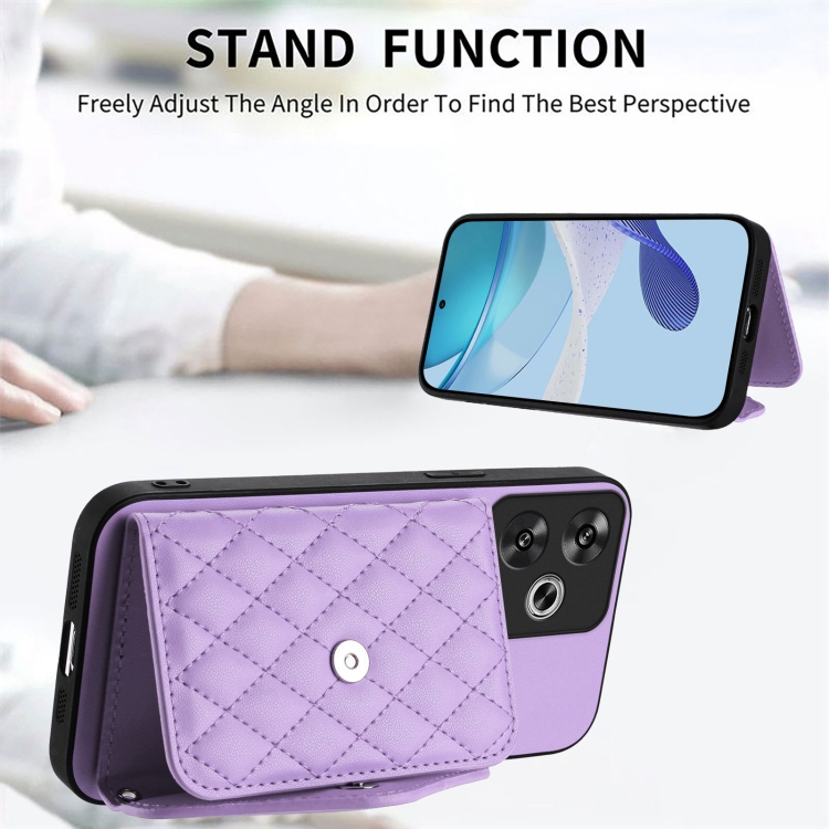 Funda para Teléfono con Textura Rómbica para Xiaomi Poco F6 5G, con Rfid, con Cordón Largo (Morado Claro)