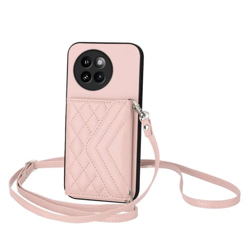Funda para Teléfono con Textura Rómbica y TaRJetero Rfid para Xiaomi Civi 4 Pro con Cordón Largo (Oro Rosa)