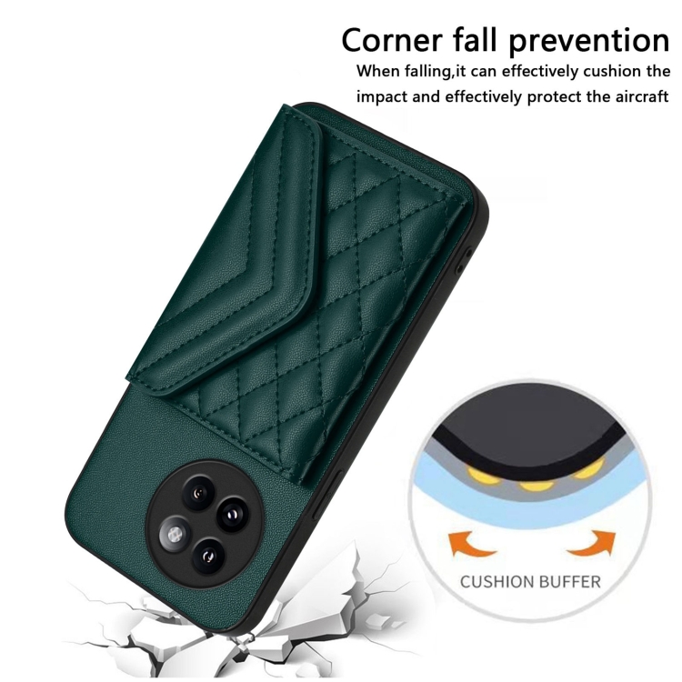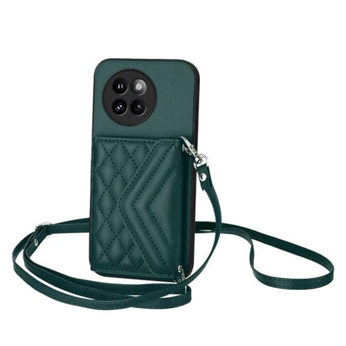 Funda para Teléfono con Textura Rómbica y TaRJetero Rfid para Xiaomi Civi 4 Pro con Cordón Largo (Verde)