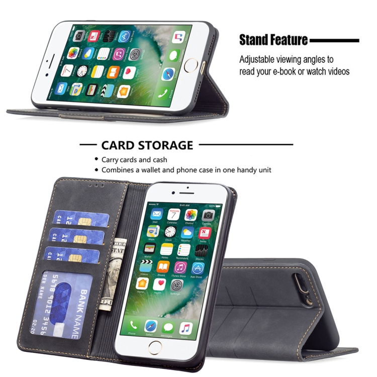 Funda para teléfono Cuero magnético Empalme iPhone 8 Plus / 7 Plus (Negro)