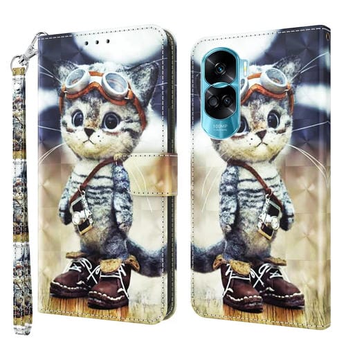 Funda para Teléfono Honor 90 Lite Cuero Pintado 3D Gato Travieso