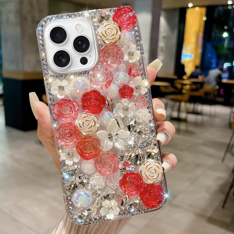 Funda para Teléfono PC iPhone 16 Pro Max Diseño Diamante Perlado Rosa (Rojo)