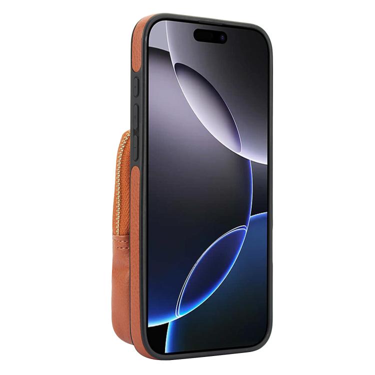Funda para Teléfono Awquer iPhone 16 Pro Max Piel de Lichi Cremallera Cartera (Marrón)
