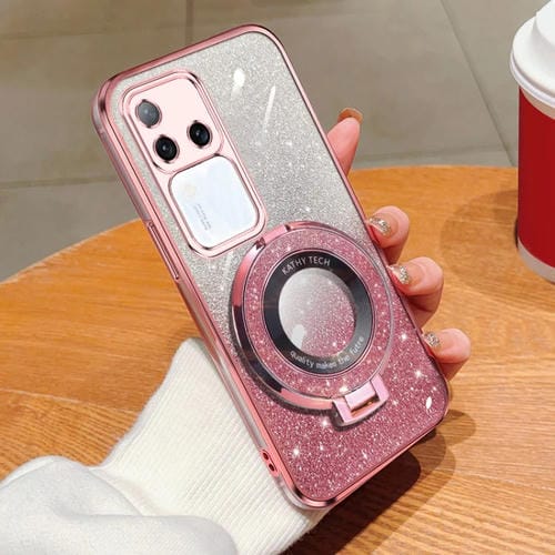 Funda para Teléfono de TPU con Soporte Redondo y Purpurina Degradada Plateada para Vivo S18 Pro (Rosa)