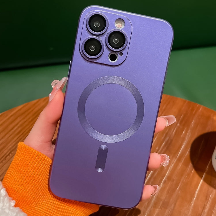 Funda para Teléfono TPU Líquido Magsafe con Pintura Metalizada para iPhone 16 Pro Max (Morado)