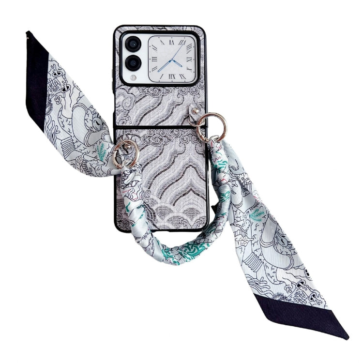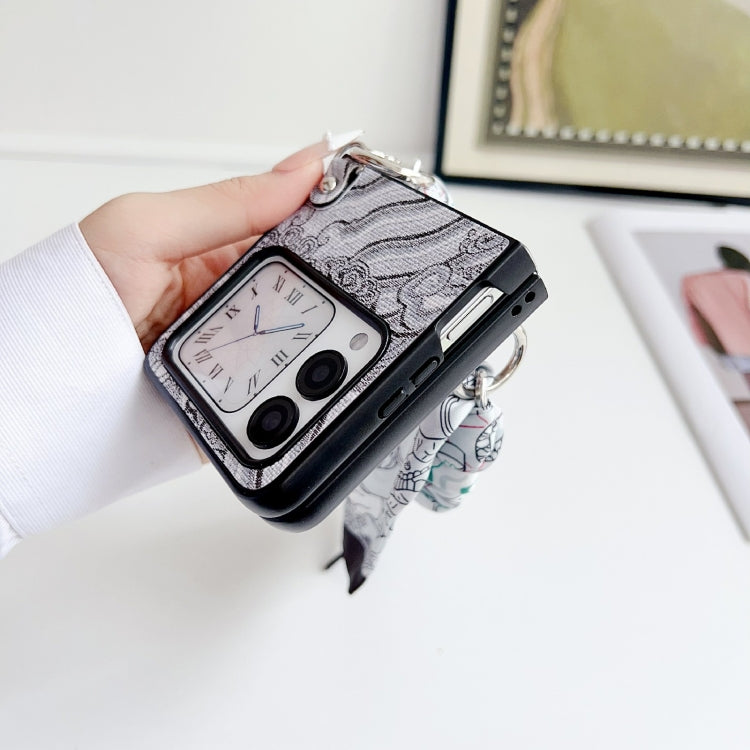 Funda para Teléfono Huawei Nova Flip Bordado Nubes Cobertura Total con Bufanda/Pulsera (Gris)
