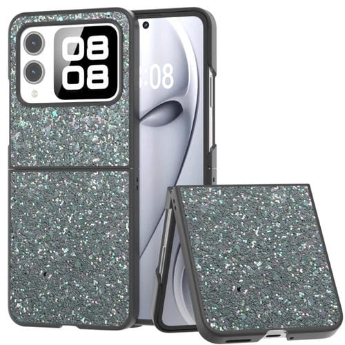 • 1x Funda para Teléfono Huawei Nova Flip con Marco Negro y Purpurina Colorida (Negro y Verde)