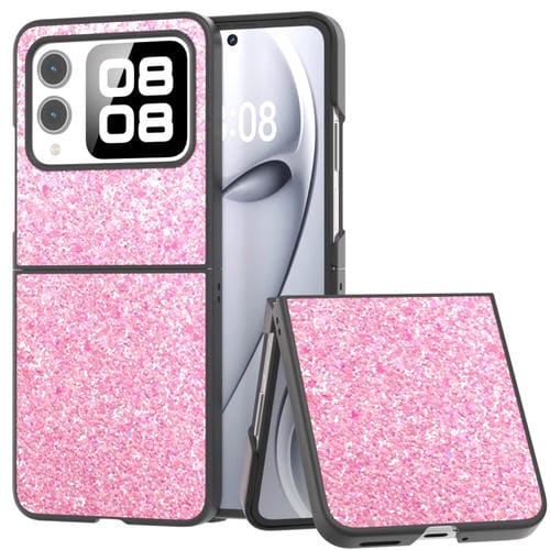 Funda para Teléfono Huawei Nova Flip con Marco Negro y Purpurina (Púrpura y Rosa)