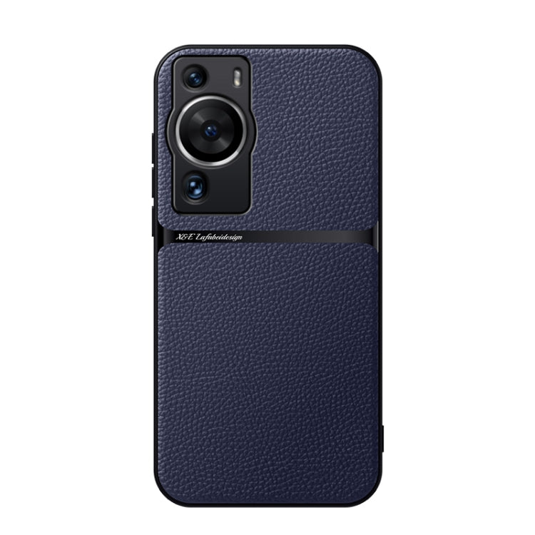 Funda para Teléfono Huawei P60 Pro Piel de Lichi Cobertura Total Magnética a Prueba de Golpes (Azul Marino)