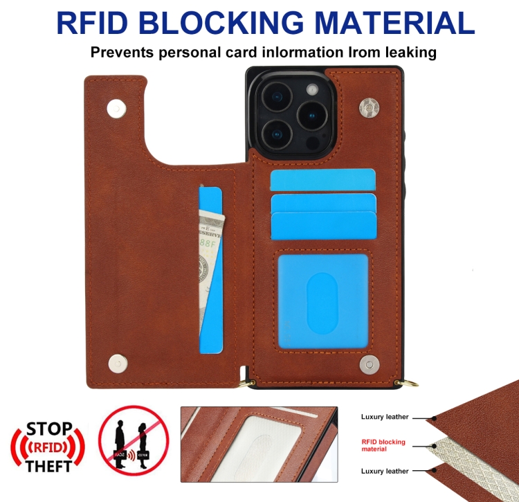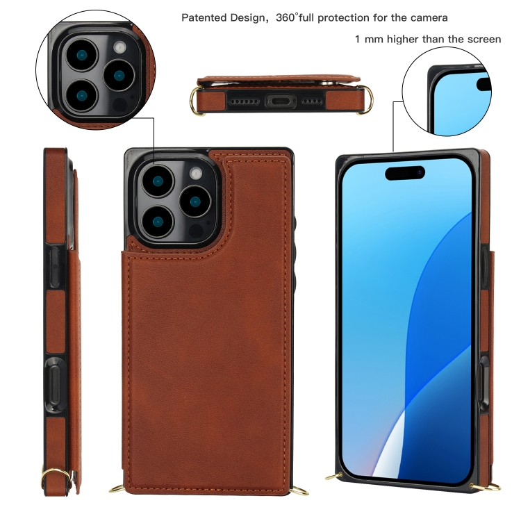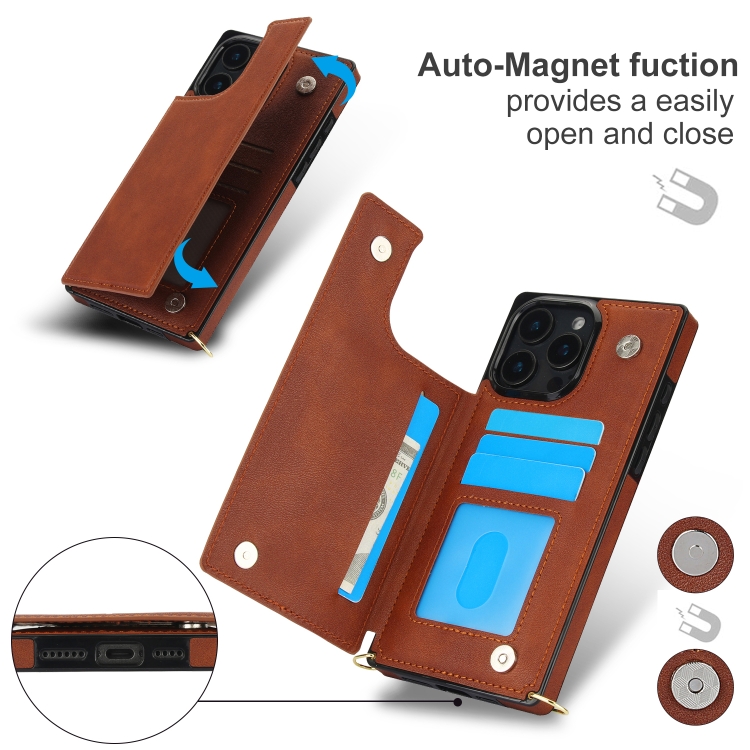 Funda para Teléfono Tipo Billetera con Tapa y Doble Hebilla Cuadrada Cruzada iPhone 16 Pro Max (Marrón)