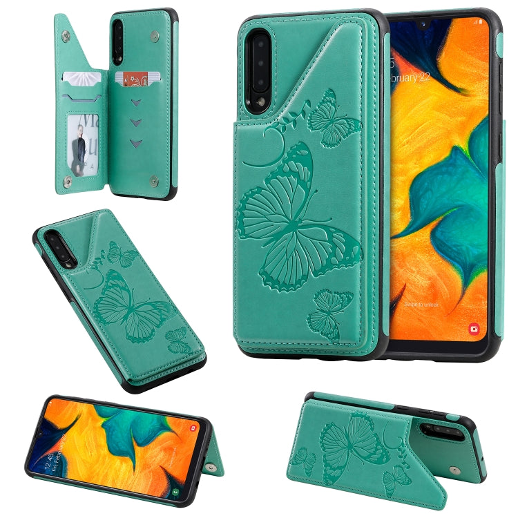 Coque de protection antichoc pour Galaxy A50, motif imprimé papillon, avec support, emplacements pour cartes et cadre photo (vert)