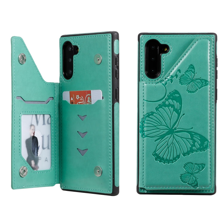 Funda Protectora Galaxy Note10 Estampado Mariposa Soporte Ranuras Tarjetas Marco Fotos (Verde)