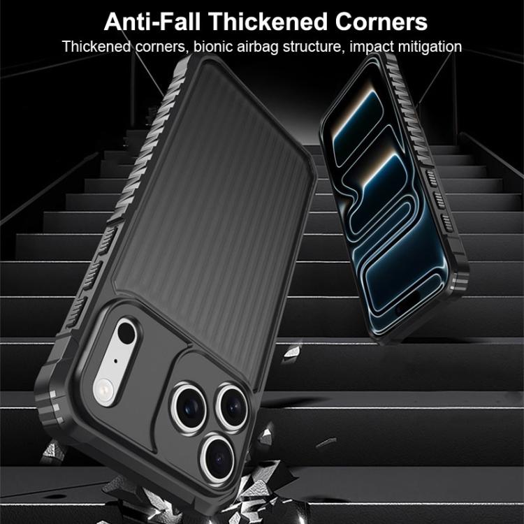 Funda protectora antigolpes War Shadow Stripe Series con airbag y acabado esmerilado para iPhone 17 Pro (Gris)