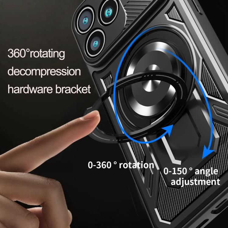 6. Soporte giratorio de 360 ​​grados: El soporte integrado ofrece el ángulo de visión ideal tanto en orientación horizontal como vertical.Al plegarse, se alinea perfectamente con la parte trasera de la funda, manteniendo un perfil delgado para facilitar su deslizamiento en el bolsillo.