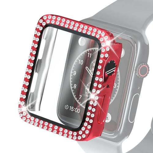 Funda Protectora Doble Diamante PC Galvanoplastia con Cristal Templado para Apple Watch Series 3 2 1 42mm (Rojo)