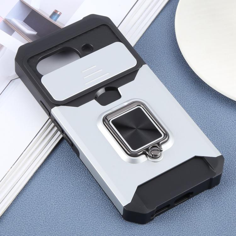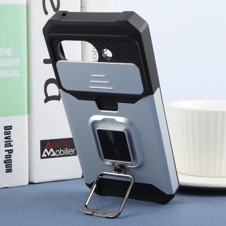 Funda Protectora para Cámara y Ranura para Tarjetas Google Pixel 9A de Policarbonato y TPU (Plateada)