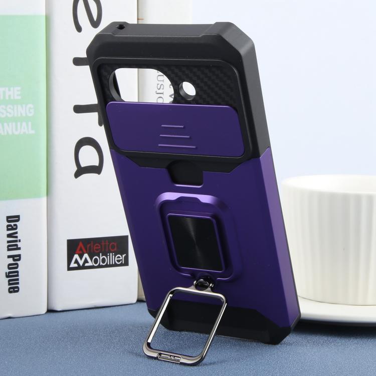 Funda Protectora para Cámara y Ranura para Tarjetas Google Pixel 9A PC y TPU (Morado)