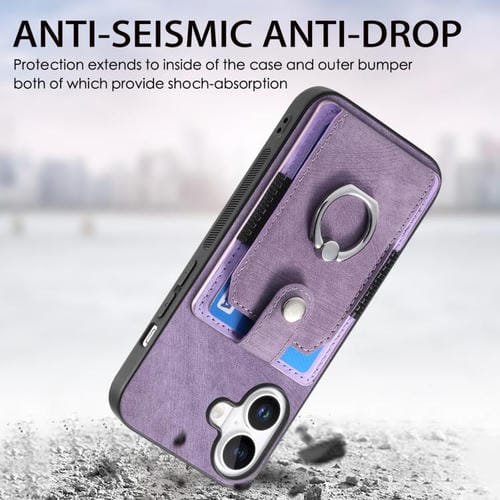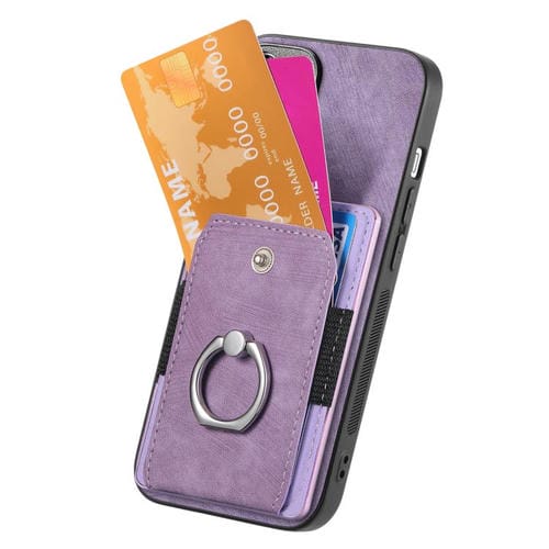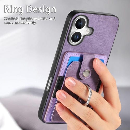 Funda tipo cartera con anillo y tarjetero para iPhone 17 (morada)