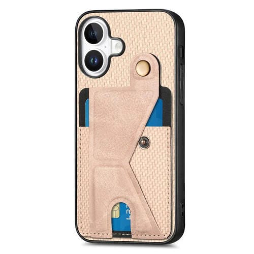 Funda tipo cartera de fibra de carbono con tarjetero en forma de K para iPhone 17 (caqui)