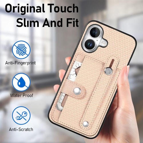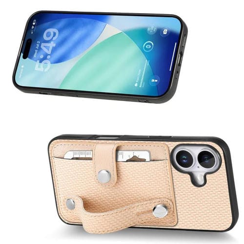 Funda trasera tipo billetera con soporte para tarjeta y correa para muñeca para iPhone 17, con cuchillo (caqui)