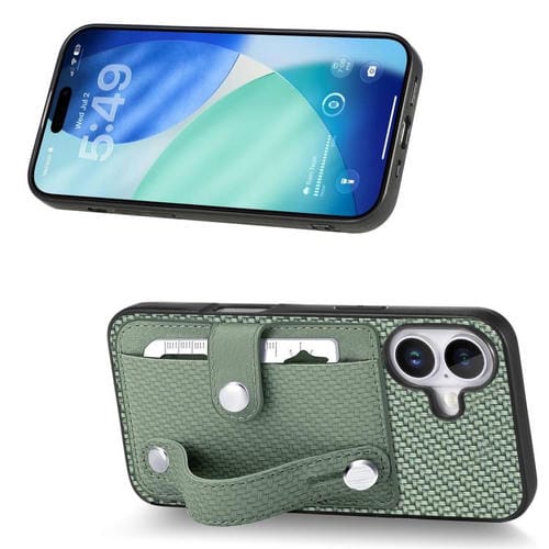 Funda trasera tipo billetera con soporte para tarjeta y correa para muñeca para iPhone 17, con cúter (verde)